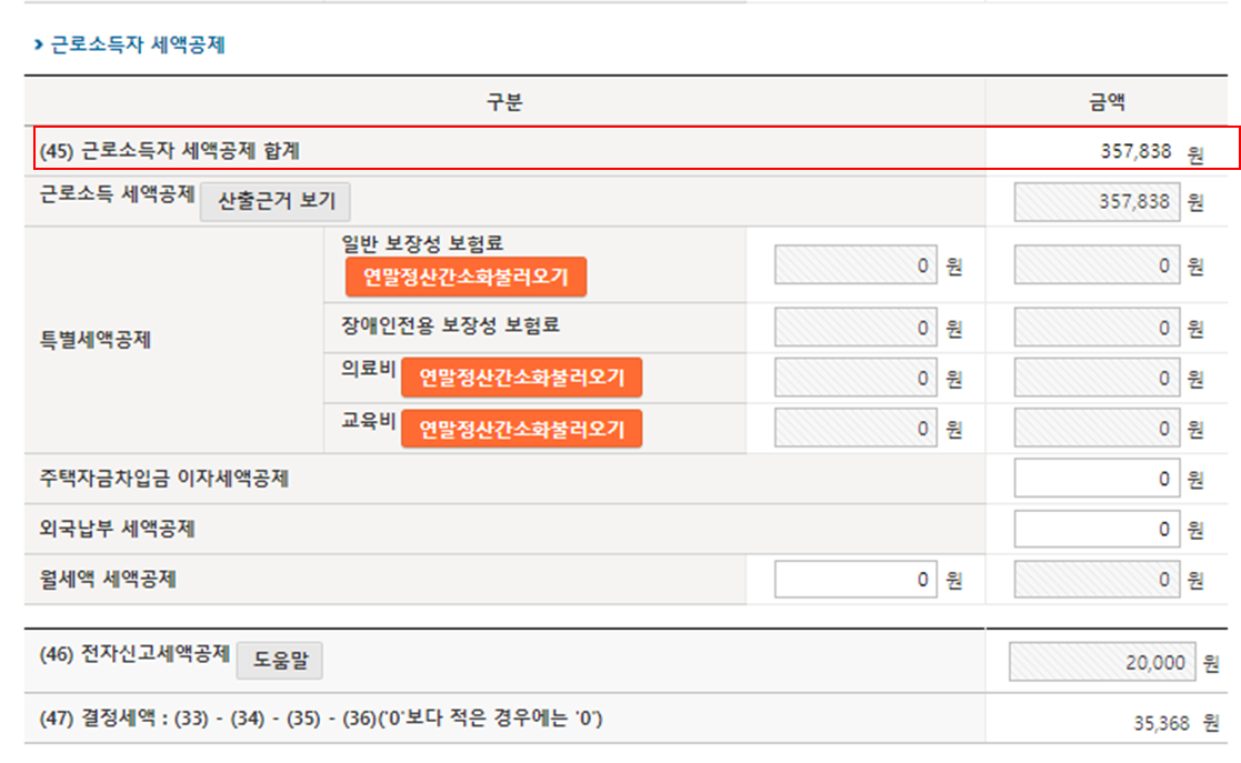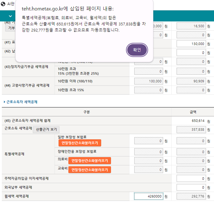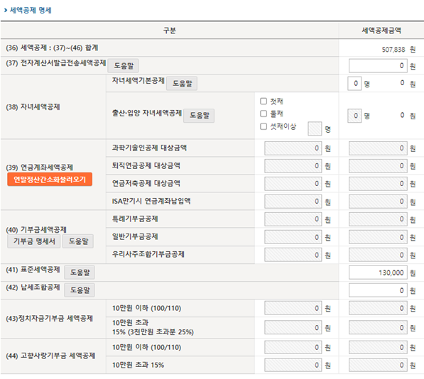 이건 진짜 아니다 싶어 보니, 월세액 공제도, 기부금공제 등등 아무것도 세액공제되어있지 않았다. 😢 😢