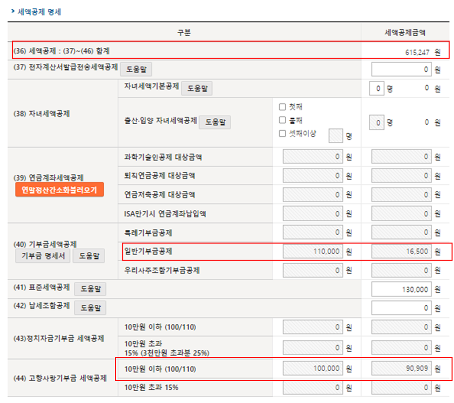 - 공제대상금액 : 01.01~12.31 기부금 총합