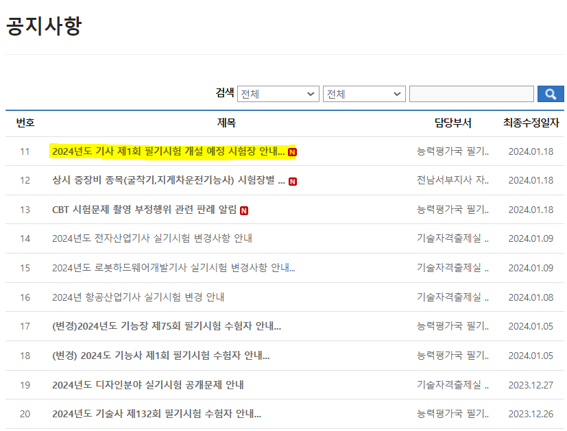 공지사항 목록 | Q-net