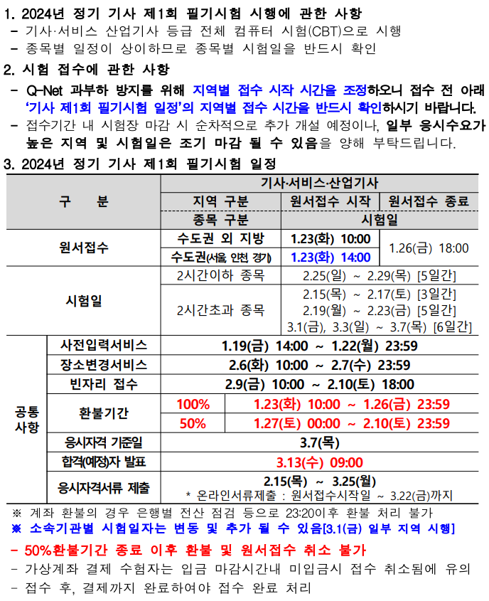 1. 필기시험 주요 안내사항 읽기